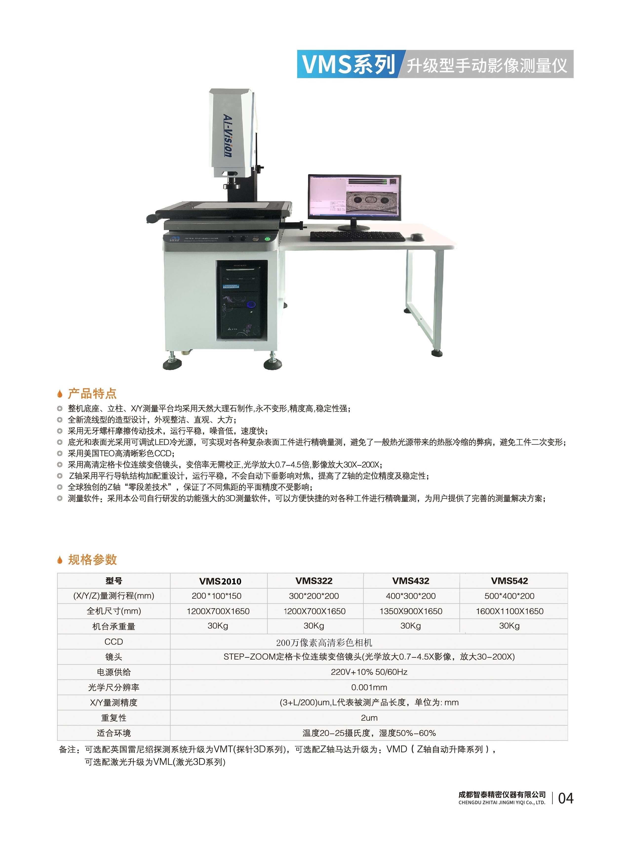 成都智泰精密儀器有限公司專注于精密測(cè)量?jī)x器,人工智能,智能制造領(lǐng)域,專業(yè)從事智能視覺自動(dòng)化檢測(cè)解決方案的貿(mào)易型企業(yè)。公司成立于2011年,位于天府之國(guó)成都,現(xiàn)有行業(yè)精英十余人,辦公倉(cāng)儲(chǔ)面積200余平米。 公司主要產(chǎn)品為精密光學(xué)影像測(cè)量?jī)x,精密輪廓形狀測(cè)量?jī)x,精密機(jī)器人定位系統(tǒng),精密智能視覺尺寸檢測(cè)儀器,精密表面缺陷智能檢測(cè)設(shè)備,工業(yè)工程特種機(jī)器人。 公司憑借過(guò)硬的技術(shù)實(shí)力和產(chǎn)品方案,率先進(jìn)入智能視覺自動(dòng)化檢測(cè)領(lǐng)域,推廣以精密智能視覺自動(dòng)化檢測(cè)為基礎(chǔ)的機(jī)器人自動(dòng)化應(yīng)用,公司不斷整合上下游的資源,擁有巨大的全產(chǎn)業(yè)鏈優(yōu)勢(shì)??蛻羧后w覆蓋了我國(guó)精密制造業(yè)的多數(shù)領(lǐng)域,包括航空、航天、軍工、汽車、新能源、光伏、食品,精密電子、精密機(jī)械、模具、PCB、LCD、五金、塑膠、醫(yī)療、教育、計(jì)量及科研院所等行業(yè)。 公司創(chuàng)新的產(chǎn)品能滿足生產(chǎn)與制造行業(yè)客戶的要求,訓(xùn)練有素的工程師能及時(shí)提供多種技術(shù)服務(wù),如解...